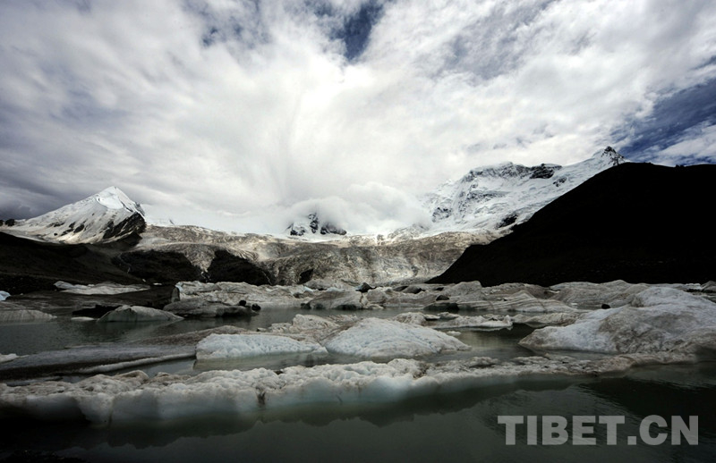 圖為(wei) 薩普冰川腳下,名叫同錯的冰川湖景觀(唐召明2014年7月10日攝)