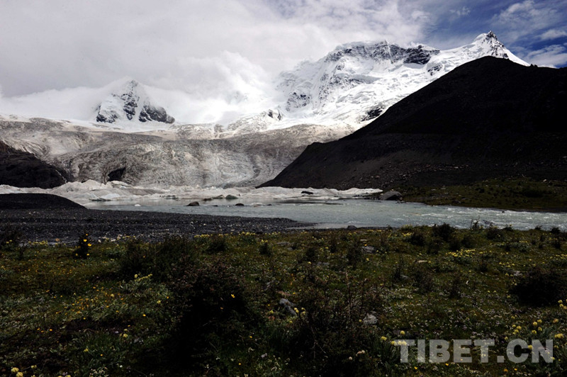 圖為(wei) 薩普冰川腳下,花紅草綠,水草豐(feng) 美(唐召明2014年7月10日攝)