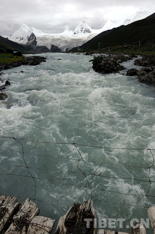 圖為(wei) 冰川在山腳下不斷地融化後奔流而下,成為(wei) 怒江的一個(ge) 支流(唐召明2014年7月10日攝)