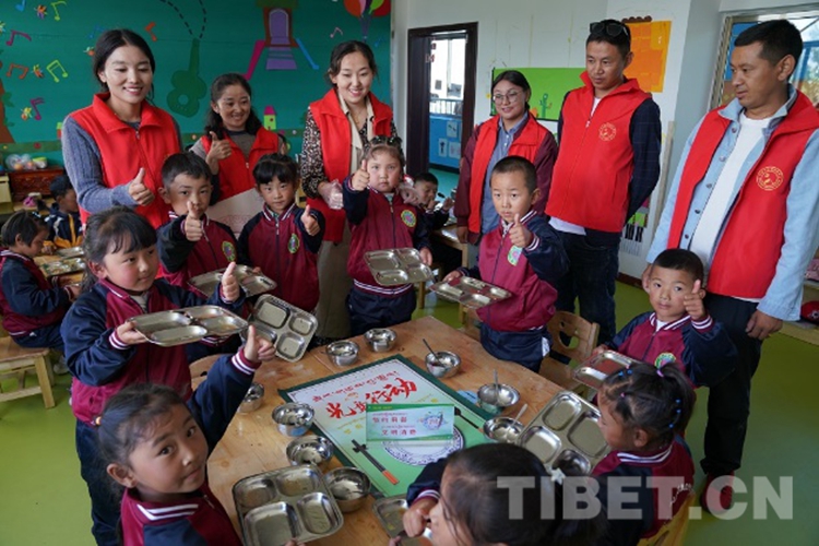誌願者宣傳(chuan) 服務的第一站是縣“雙語”幼兒(er) 園。當天,誌願者們(men) 耐心向幼兒(er) 們(men) 講道:“農(nong) 民伯伯很辛苦,飯菜來之不易”,教育他們(men) 要珍惜糧食,不能挑食,養(yang) 成良好的飲食習(xi) 慣。“叔叔阿姨,我們(men) 都是好孩子,我們(men) 不挑食,也不浪費一粒米。”正在上大班的貢覺措姆小朋友說。