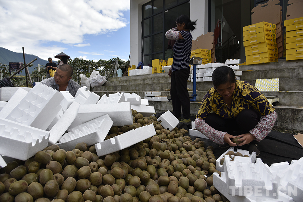 圖為(wei) 下察隅鎮夏尼村獼猴桃種植基地,工人們(men) 正在包裝獼猴桃 攝影:王媛媛