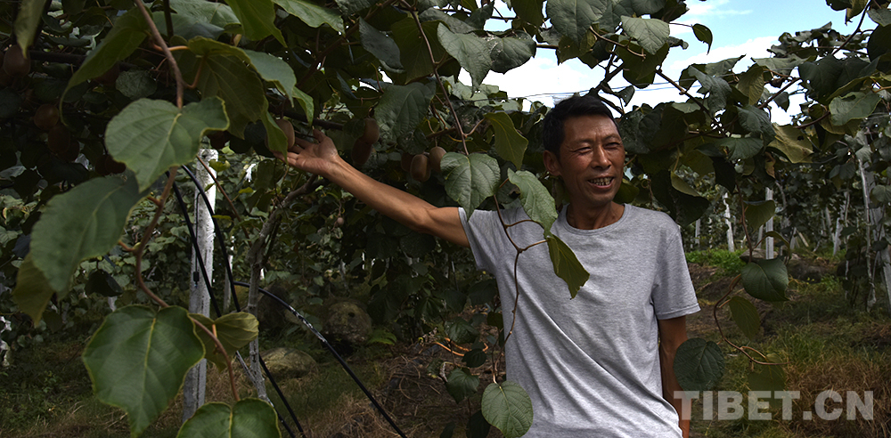 圖為(wei) 下察隅鎮夏尼村獼猴桃種植基地的種獼猴桃的老鄭 攝影:王媛媛