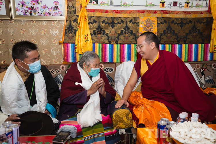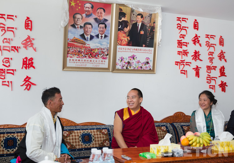 9月25日清晨,新雨初灑,十一世班禪走進三崗村調研。在村民尼瑪頓珠家中,十一世班禪仔細詢問了家人健康、孩子就學,以及邊貿經商等具體(ti) 情況。在聽到在黨(dang) 和政府惠民政策的幫扶下,尼瑪頓珠一家靠著邊貿生意一年有13萬(wan) 元左右的收入,病有所醫、幼有所教的時候,十一世班禪很是欣慰。