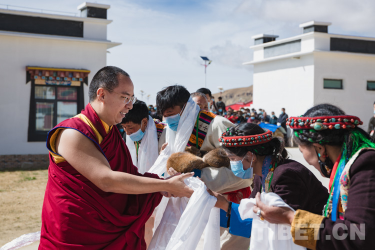 同樣期盼著十一世班禪到來的還有堆納鄉(xiang) 古汝村,9月27日上午,多慶湖畔、卓木拉日峰下,海拔4500餘(yu) 米的古汝村迎來了期盼許久的十一世班禪。在隆重熱烈的歡迎儀(yi) 式中,十一世班禪一行走進村委會(hui) 。