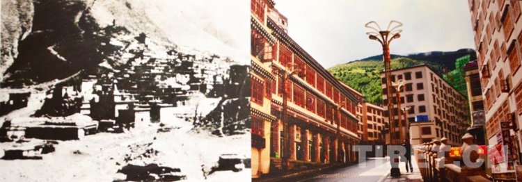 左圖為(wei) 1938年德格縣城舊貌,右圖為(wei) 德格縣城今貌