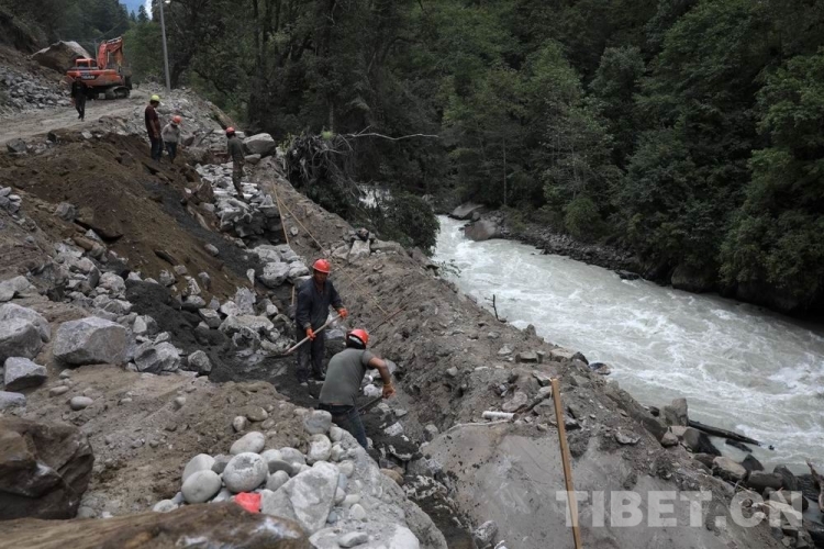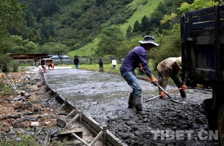 離桑巴亞(ya) 中原始森林越來越近,看到工人們(men) 正在修水泥路,這條路通向村裏四朗倫(lun) 珠、來玉措姆這兩(liang) 戶最靠近山腳的人家。