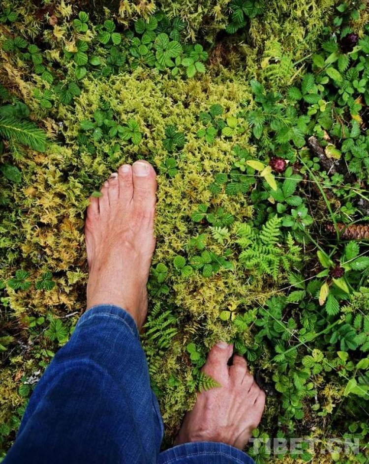 往森林深處走,四處都是巨大的倒伏的鬆樹,樹身長滿了厚厚的苔蘚,有的一腳踩上去,“撲哧”一聲,直接陷進去十幾厘米,原來,樹幹已經完全自然腐化了。