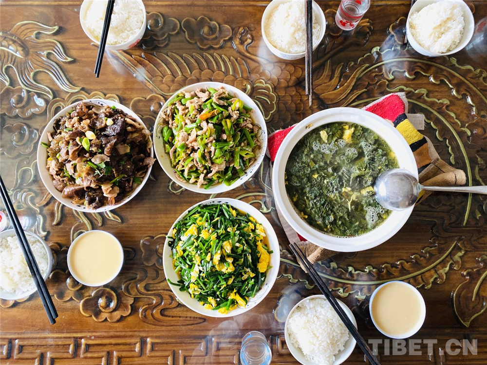 次增做得一手好菜,木耳青椒炒肉、韭菜炒雞蛋,還有蕎麥葉煮蛋湯,家常菜讓人感到非常親(qin) 切和感動。次增對我們(men) 說:“開展生態宜居示範村建設後,整個(ge) 村變化特別大,以前村裏的土路高低不平,現在道路平整,路也寬了,給我們(men) 帶來了很大的幸福,不是光我一家,我們(men) 整個(ge) 村子家家戶戶都覺得非常滿意。”