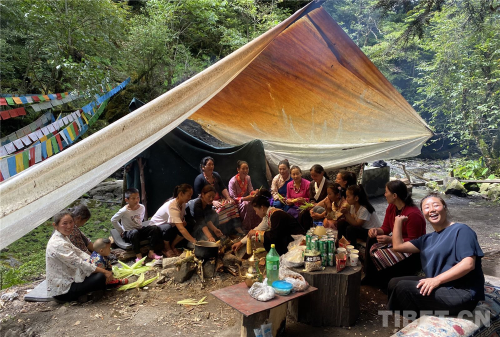距離布宗村不遠處,有兩(liang) 個(ge) 天然溫泉,是布宗村民經常前往的沐浴之地。下午,次增召集婦女小孩們(men) 一起去泡溫泉。大家走過鐵索橋,穿過一片森林,在鬱鬱蔥蔥的山林中停下來,在一個(ge) 簡樸的溫泉池旁,大家高興(xing) 地生起篝火,煮上酥油茶,烤上玉米,唱著康巴歌曲,小朋友們(men) 嘻戲打鬧好不歡快。