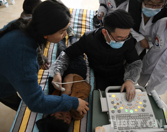 醫療隊和誌願者們(men) 不顧舟車勞頓和高原反應的不適,認真地對每一位前來篩查的小朋友進行詳細的詢問和認真的檢查。對於(yu) 有疑似症狀的患者則現場利用從(cong) 北京帶來的先進設備進行彩超診斷,並耐心和每一位患者家屬進行交流和講解,在每個(ge) 工作細節上精益求精。