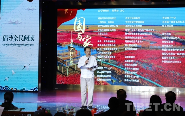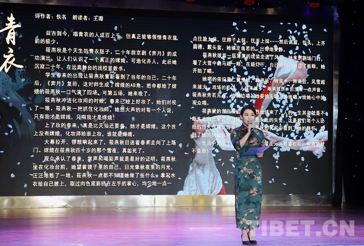 活動以“倡導全民閱讀 助力小康社會(hui) ”為(wei) 主題,以詩歌朗誦為(wei) 主要表現形式。活動現場,來自西藏天利經濟文化發展有限公司、“雪域萱歌”微信平台、萌升教育的詩歌愛好者們(men) 慷慨激昂、聲情並茂地呈現的文化視聽盛宴,贏得了觀眾(zhong) 一次又一次熱烈的掌聲與(yu) 喝彩。