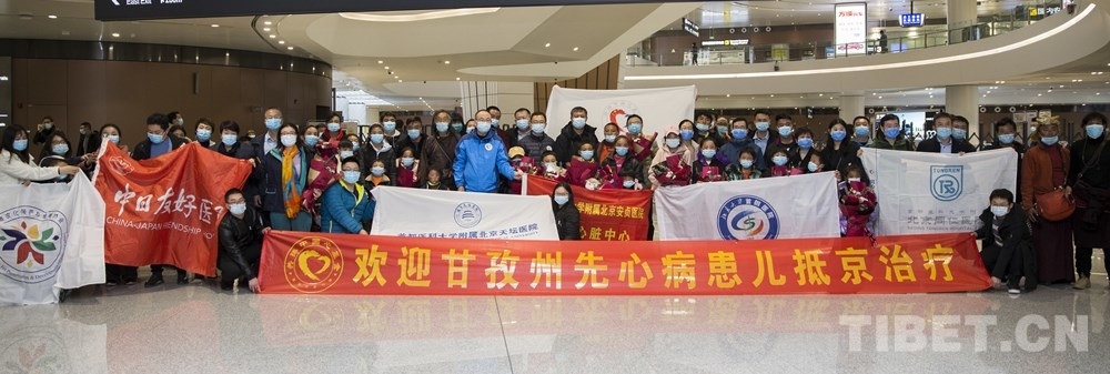圖為(wei) 來自甘孜藏族自治州的23名先心病患者抵京,與(yu) 前來迎接的醫生、誌願者們(men) 合影 攝影:姚浩然