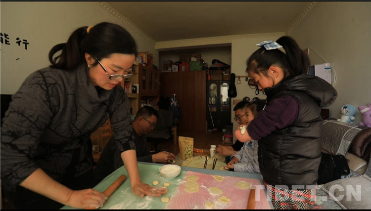 圖為(wei) 熊婉晴一家人包餃子過周末