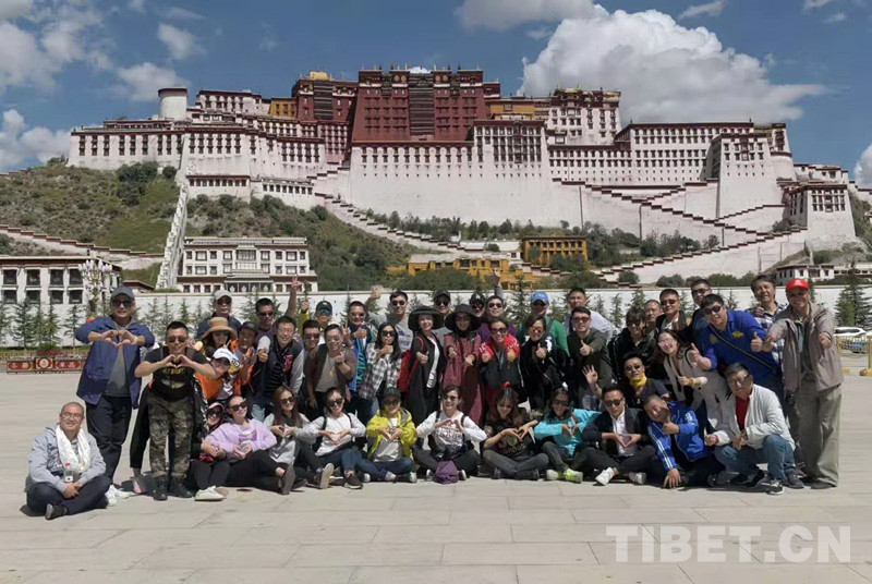 這是中國評劇院藝術家在拉薩演出結束後,來到布達拉宮前合影留念(唐召明提供,2018年9月19日攝)