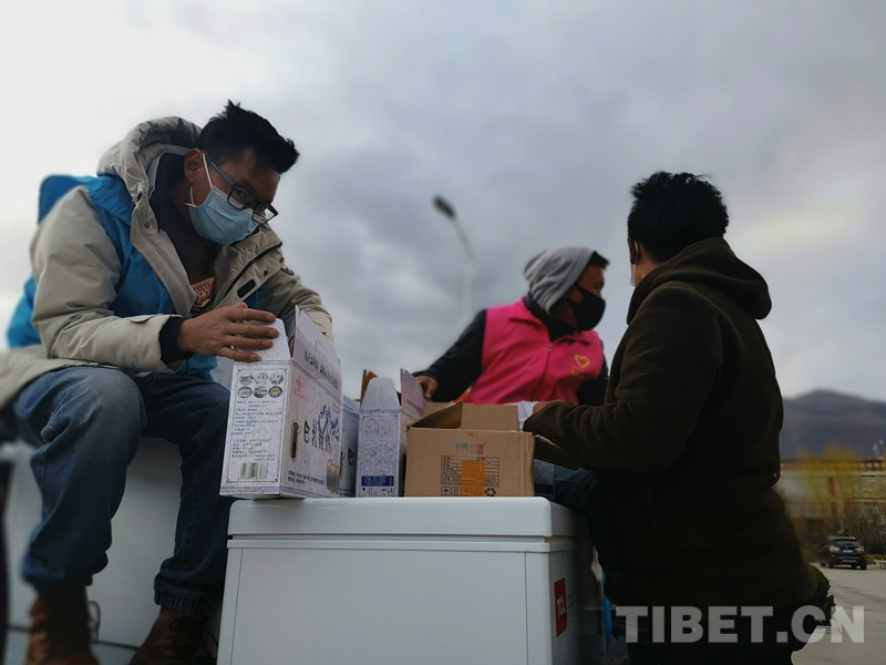 圖為(wei) 組織工作人員在山南市體(ti) 育場周邊擺地攤售賣農(nong) 特產(chan) 品