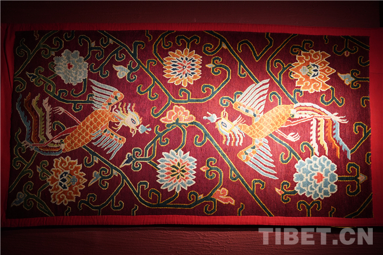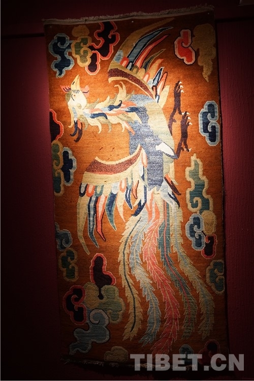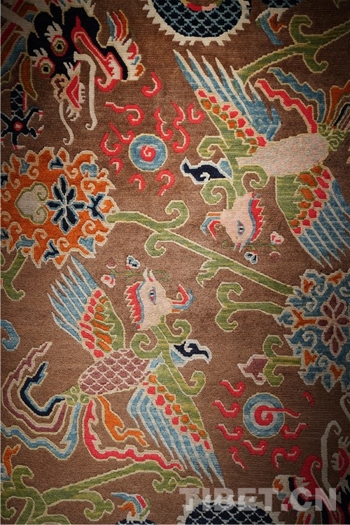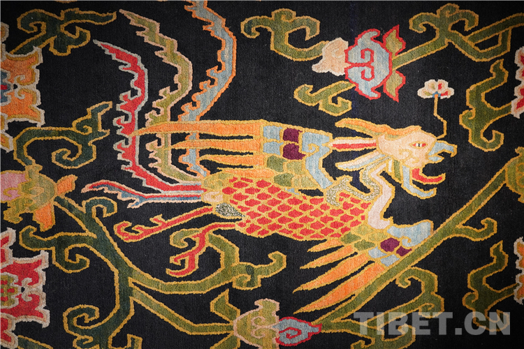 “本次展覽的藏毯,色彩搭配和編織都是技藝一絕,尤其是圖案寓意深遠,最具特色的是龍身鳳尾的龍鳳呈祥花紋非常精美。”介觀藝術中心的創始人徐應龍介紹,“上半身為(wei) 龍身,下半身為(wei) 鳳尾,體(ti) 現了多民族的文化交往交流交融。”