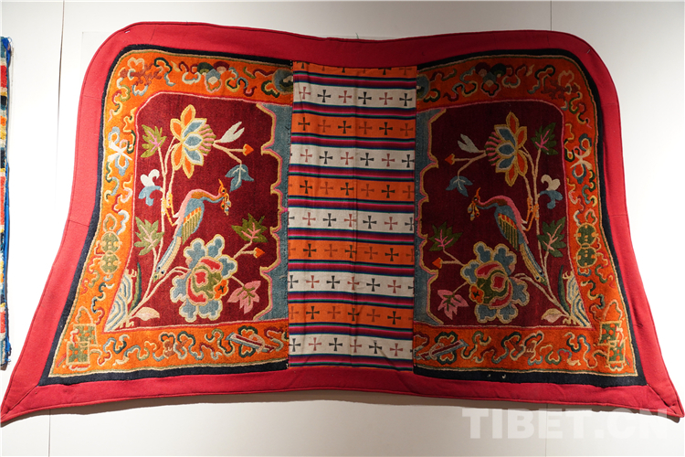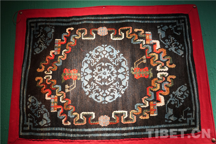 習(xi) 慣上,藏毯被分為(wei) 寺廟用毯與(yu) 世俗用毯。寺廟用毯為(wei) :禪毯、幡毯、柱毯、金剛法舞毯、門簾毯等。世俗用毯為(wei) :室內(nei) 卡墊、地毯、馬鞍毯、馬褥子、驢遮麵、坐墊等,與(yu) 雪域高原獨特的生活方式,民族文化息息相關(guan) 。