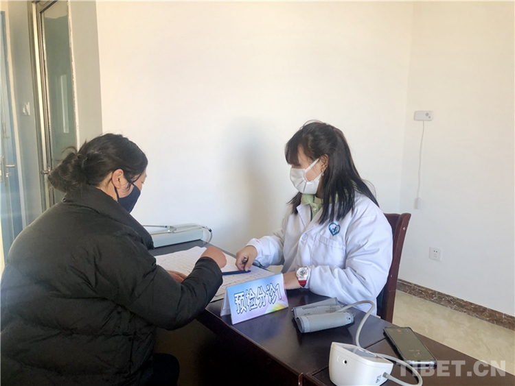 圖為(wei) 爐霍縣相關(guan) 工作人員李春燕介紹新冠肺炎疫苗接種有關(guan) 情況
