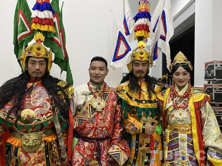 圖為(wei) 斯塔多吉(左二)準備表演格薩爾史詩片段