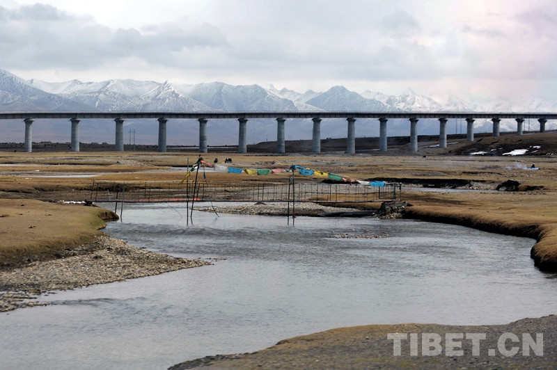 圖為(wei) 藏北高原上,一座以橋代路的“天路”特大高架橋(唐召明2008年4月4日攝)