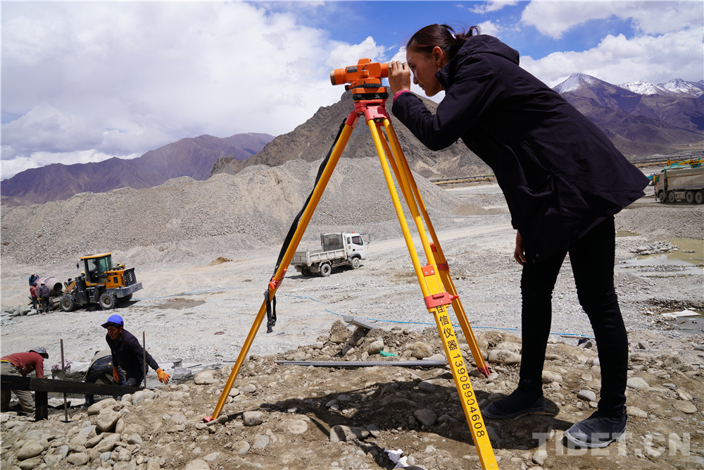 圖為(wei) 洛桑白珍在工地上測量放線中