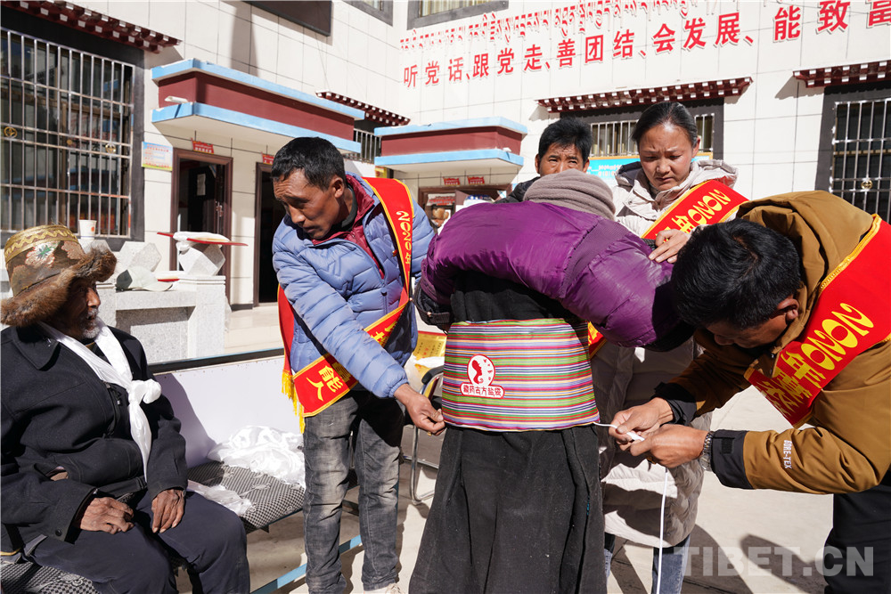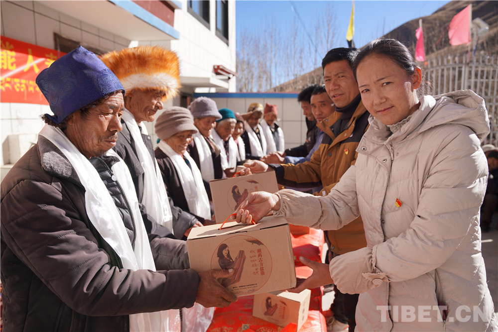 先富起來的人們(men) 集中慰問了村裏10名老人,送去了10條被子、10套藏藥古方鹽袋等價(jia) 值近3000元的慰問品,得到了村民們(men) 的讚譽。