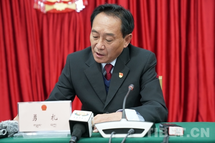 圖為(wei) 西藏自治區人大法製委員會(hui) 副主任委員勇紮介紹有關(guan) 情況 攝影:王淑