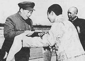 圖為(wei) 十世班禪向毛澤東(dong) 主席敬獻哈達 (喜饒尼瑪提供)