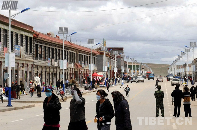 圖為(wei) 藏北班戈縣城路兩(liang) 邊新安裝的太陽能路燈 唐召明2009年攝