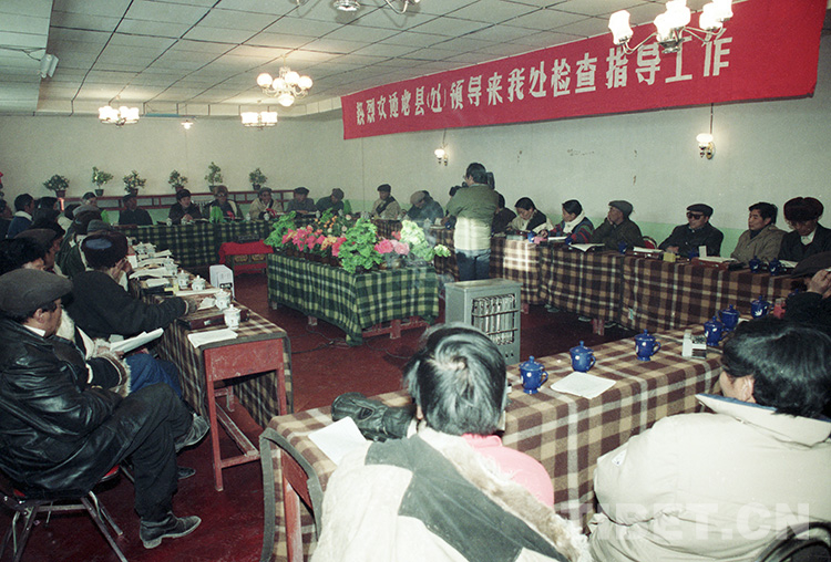 圖為(wei) 西藏那曲地區基層政權建設工作現場會(hui) 在文部辦事處召開(唐召明1989年12月攝)