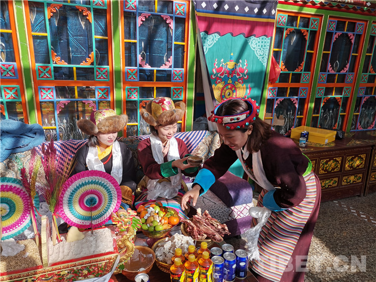 在西嘎拉村普瓊家,一進門,普瓊的女兒(er) 就為(wei) 新到的“貴客”獻上潔白的哈達,並祝福他們(men) 藏曆新年快樂(le) 。