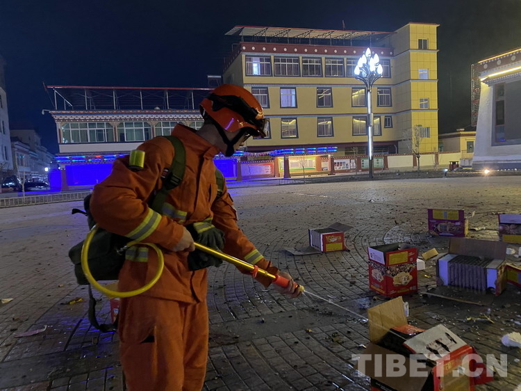 圖為(wei) 西藏自治區林芝市察隅縣森林消防中隊指戰員在除夕夜守夜