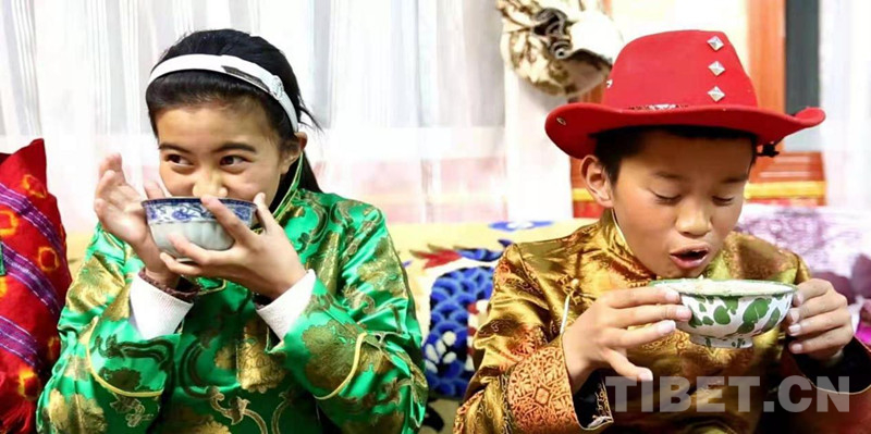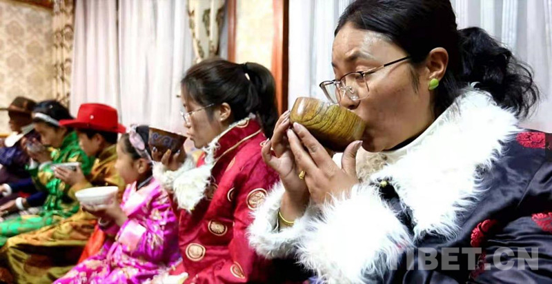 圖為(wei) 索南旺久一家換上節日的盛裝一起吃“古突” 攝影:吳學明