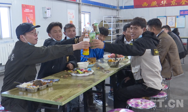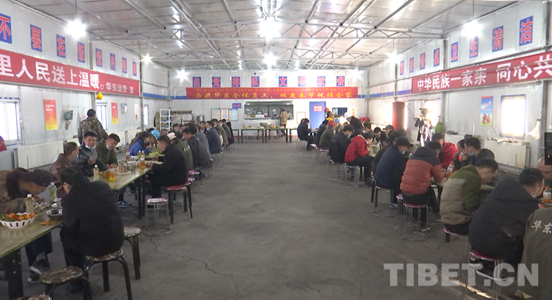 圖為(wei) 阿裏地區熱電聯廠員工在企業(ye) 食堂集體(ti) 吃年夜飯 攝影:王佳豪