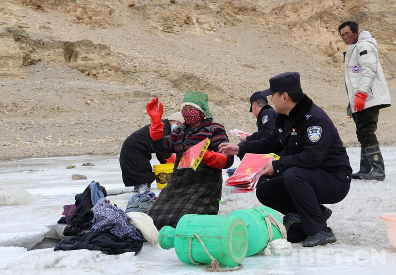在群眾(zhong) 家裏、街道上、冰河上,直克鄉(xiang) 邊境派出所民警向群眾(zhong) 送出了一麵麵嶄新的國旗,鮮紅的國旗映紅了每個(ge) 人的臉龐,將揚帆啟航新征程的祈願深入每個(ge) 人的心中。直克鄉(xiang) 索白村退伍老兵朗加激動地說:“國旗是祖國的象征和標誌,需要共同守護。在雪域高原上,你們(men) 戰嚴(yan) 寒、耐寂寞,披星戴月、頂風踏雪,燃起了警民‘共話護邊’的愛國熱情,謝謝你們(men) 用實際行動溫暖著我們(men) 。”