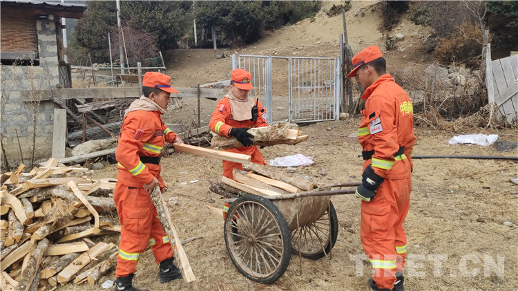 圖為(wei) 指戰員們(men) 幫助駐地居民整理木柴