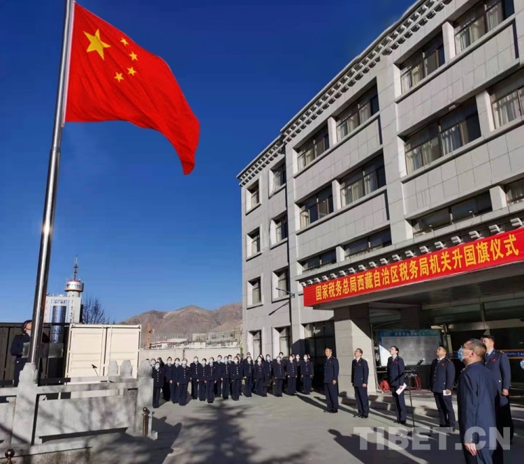 圖為(wei) 2月21日,國家稅務總局西藏自治區稅務局機關(guan) 舉(ju) 行升國旗儀(yi) 式