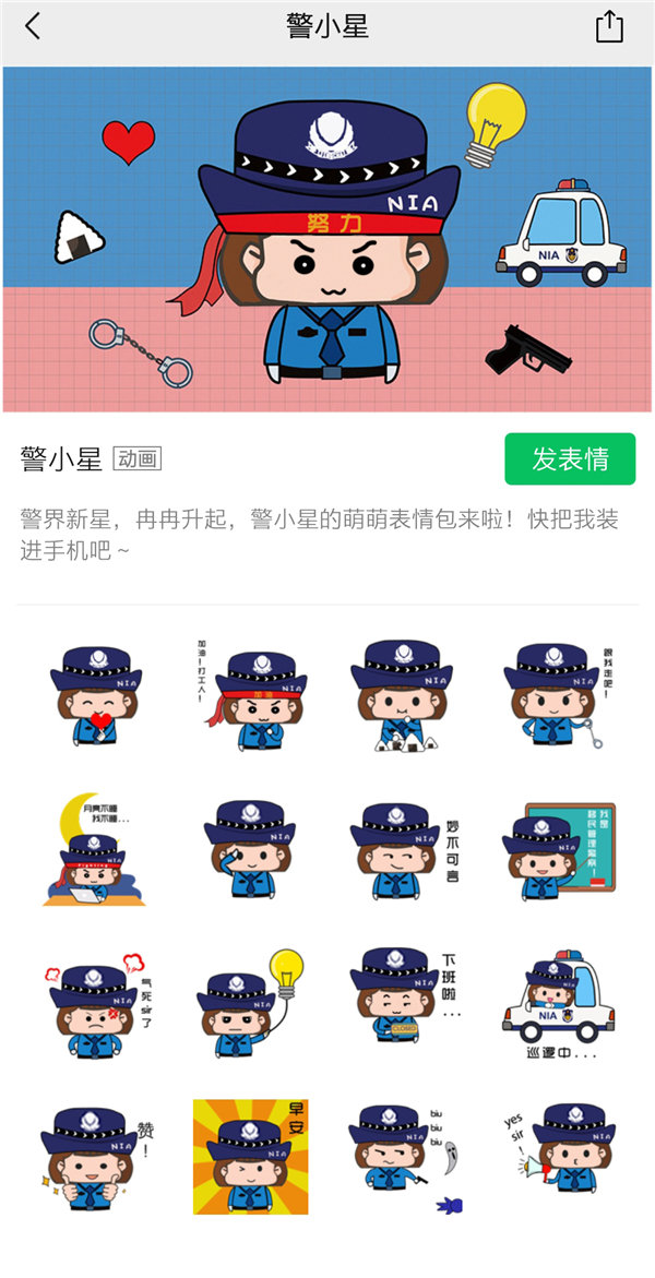 “每一個(ge) 表情的背後都有一段真實的警察故事。”龍小鳳說,加班到淩晨2點的真實體(ti) 驗誕生了女警版“加油吧 打工人”,看見女警們(men) 在一線辛苦執勤巡邏,誕生了女警版“巡邏中”。 為(wei) 何給這名呆萌的“女警”取名警小星?龍小鳳解釋,“ ‘警小星’就是‘警界冉冉升起的新星’的意思”。