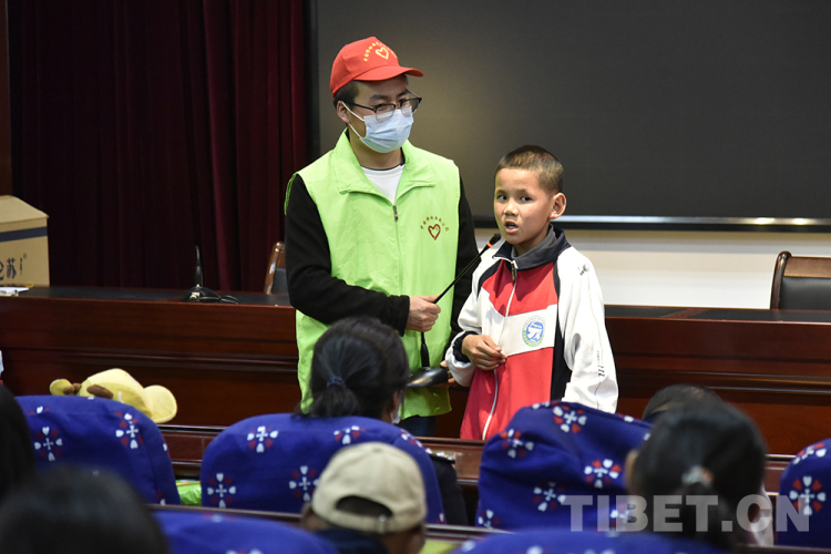 在拉薩市特殊學校會(hui) 議室裏,誌願者和特校兒(er) 童聊天談心、互動遊戲,會(hui) 議室裏不時傳(chuan) 來陣陣掌聲和歡笑聲。