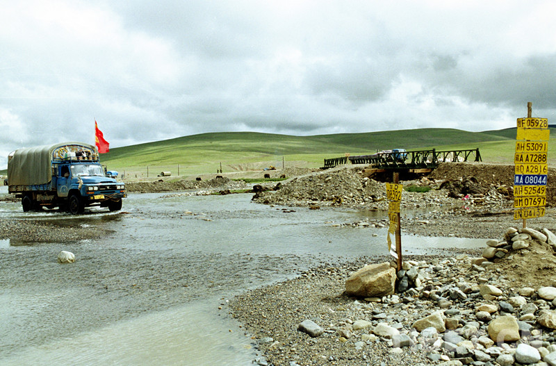 這座鐵橋長180多米,橫跨在藏北最大內(nei) 流河紮加藏布江上,是前往文部辦事處和雙湖辦事處的必經之地。每次隻能通過一輛汽車,汽車上橋常壓得橋板“吱吱嘎嘎”亂(luan) 響,讓司機無不提心吊膽。每逢夏季,橋兩(liang) 邊的公路軟得像海綿一樣。汽車在這裏陷進泥漿是常有的事。這裏是汽車司機開車最為(wei) 頭痛的地方。