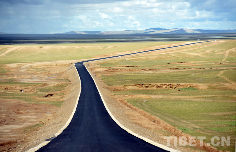 這是通往藏北雙湖縣剛鋪築完工的柏油新路(唐召明2017年7月27日攝)