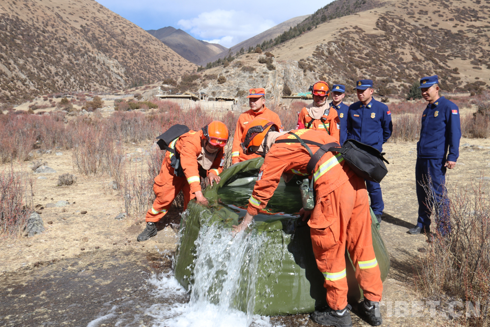 雖然今年10月才滿22歲,但蘇富康進入森林消防隊伍已經快4年了,有著豐(feng) 富的野外山地水泵架設經驗。隻見他迅速蹲下,拔開蓄水池充氣塞,將頭貼上蓄水池,用嘴對著氣孔吹了起來。等到滿臉漲紅,池子“站”穩,才熟練地把充氣塞重新蓋上。他回過頭對著嘎瑪珠傑笑道:“給蓄水池吹氣的時候要像吹氣球一樣使勁地吹,不然他就會(hui) 偷懶,站不起來,你以後吹多了就明白了。”