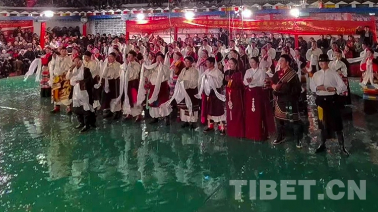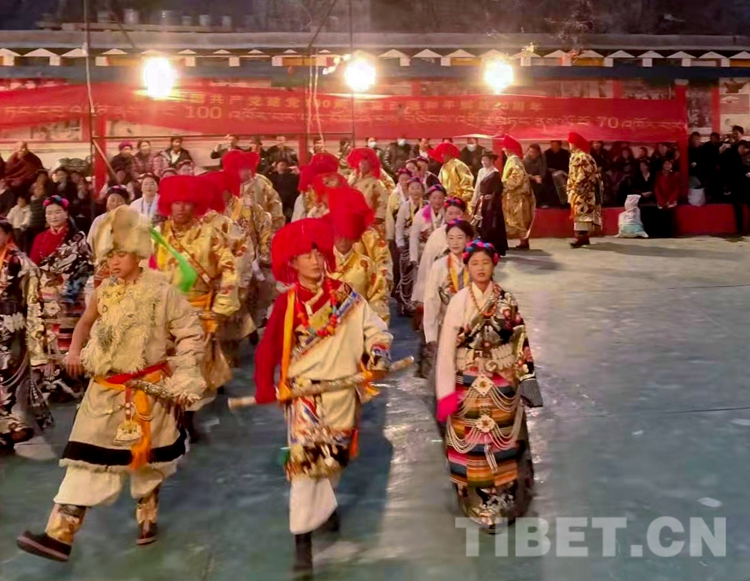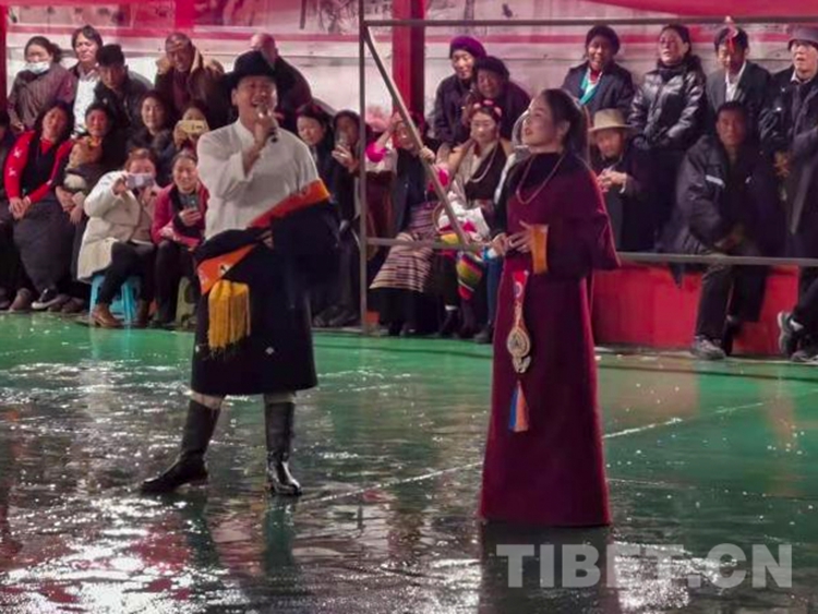 演出活動在服飾表演《幸福的日子》中拉開序幕。安麥西組的農(nong) 牧民群眾(zhong) 身著節慶盛裝走上舞台,精彩的服飾走秀展示了當地民族特色;歌曲《弦舞芒康》《心中紅》引得群眾(zhong) 情不自禁地和唱,動人的歌詞句句唱進了觀眾(zhong) 的心坎裏;群眾(zhong) 自導自演的小品《活捉鬼子》在逗得大家捧腹大笑之餘(yu) ,讓大家明白當前和平生活的來自不易;舞台劇《四個(ge) 老頭讚美新時代》及村民帶來的原生態弦子歌舞《嘎哇啦》演唱出了讚美幸福新生活、感恩共產(chan) 黨(dang) 的美好心聲,展示了產(chan) 生發展於(yu) 生產(chan) 生活中的弦子文化……一場場豐(feng) 富精彩的表演節目點燃了圍坐廣場四周的觀眾(zhong) 的熱情。