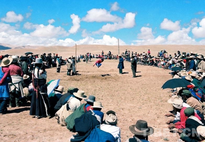 圖為(wei) 在文部辦事處(現改為(wei) 尼瑪縣)賽馬會(hui) 上,所舉(ju) 行的跳遠比賽(唐召明1987年攝)