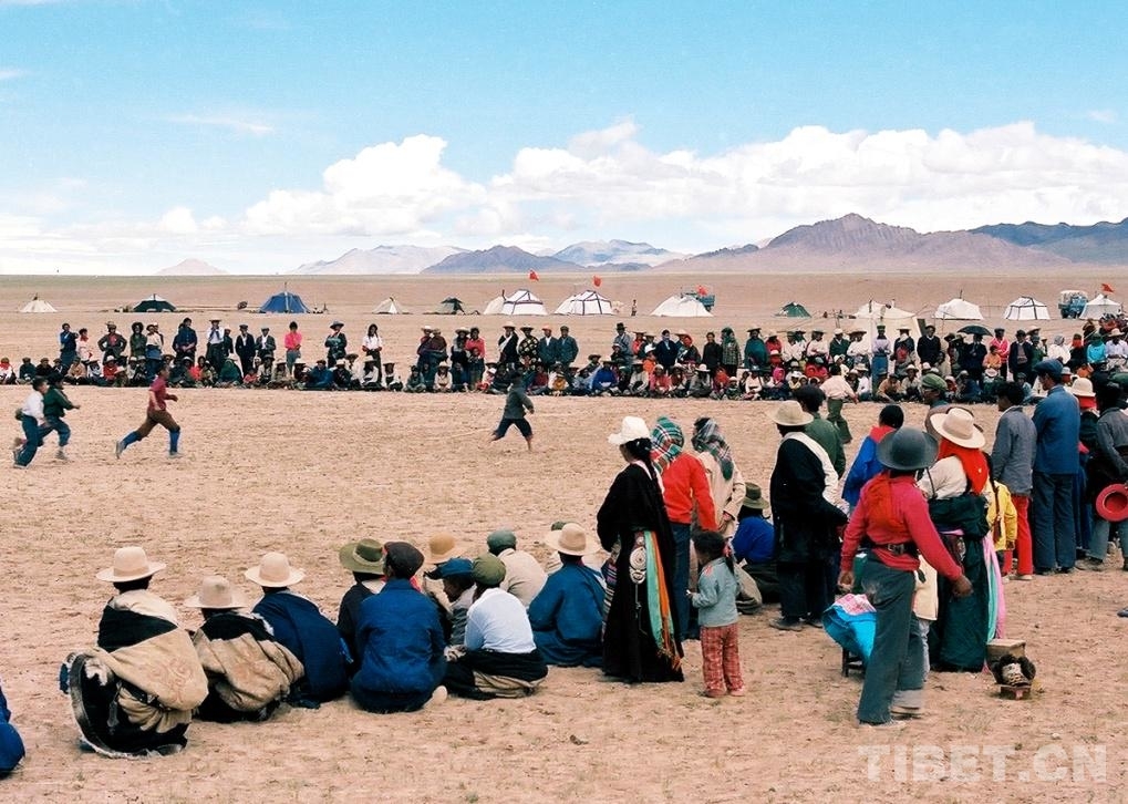 圖為(wei) 在文部辦事處(現改為(wei) 尼瑪縣)賽馬會(hui) 上,所舉(ju) 行的長跑比賽(唐召明1987年攝)