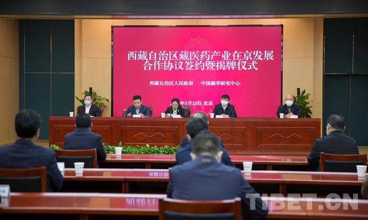 圖為(wei) 西藏自治區藏醫藥產(chan) 業(ye) 在京發展合作協議簽約暨揭牌儀(yi) 式現場 攝影:許娜