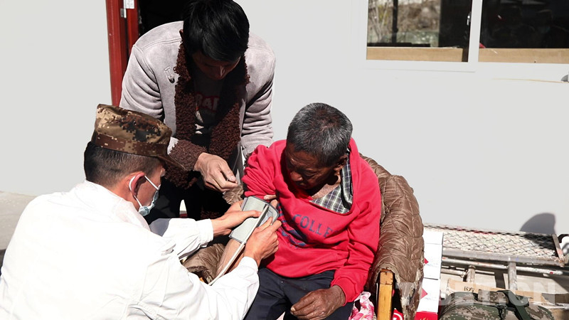 圖為(wei) 軍(jun) 醫幫老人檢查身體(ti)