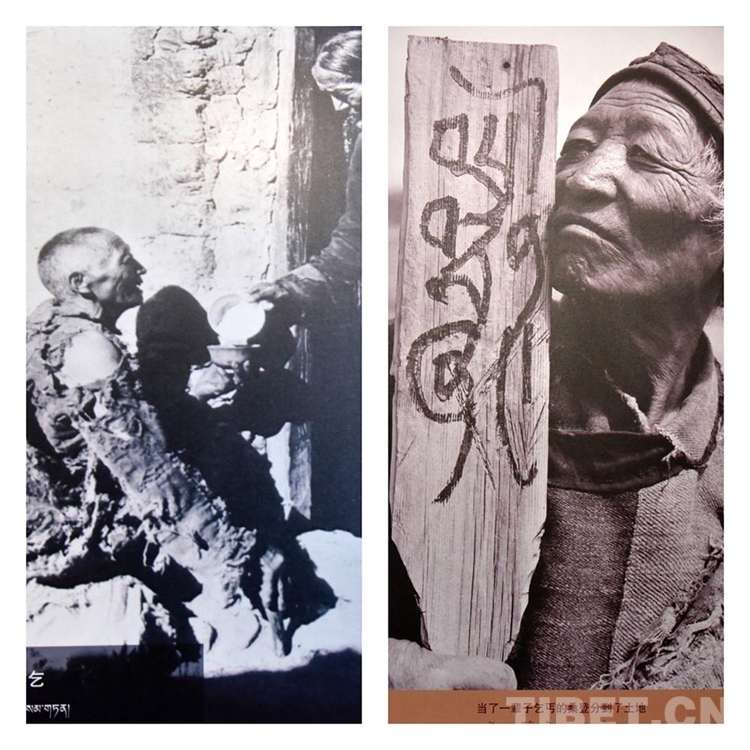 圖為(wei) 拚圖照片,左圖為(wei) 桑登求乞,右圖為(wei) 桑登分到土地 翻拍自西藏百萬(wan) 農(nong) 奴解放紀念館