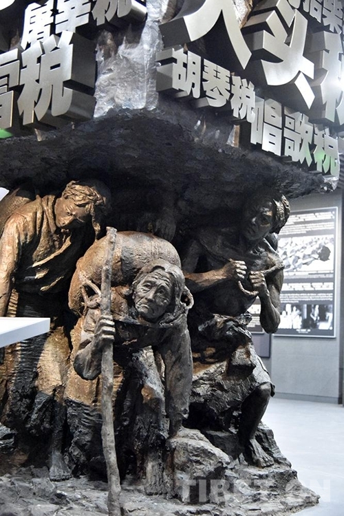 圖為(wei) 西藏百萬(wan) 農(nong) 奴解放紀念館內(nei) 反映舊西藏多如牛毛的苛捐雜稅的雕塑 攝影:王媛媛