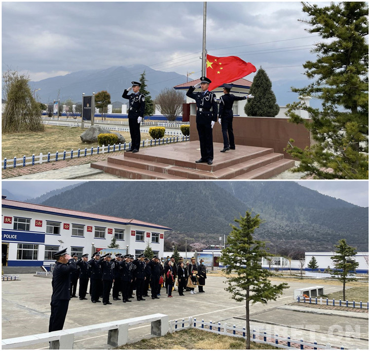 圖為(wei) 羌納邊境派出所舉(ju) 行升旗儀(yi) 式 段宇飛 攝